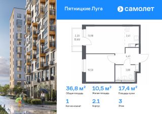 Строим кварталы для жизни с заботой о будущем. Предлагается 1-комнатная квартира комфорт-класса 36,84 кв.м в корпусе 2.1 на 3 этаже, в ЖК ''Пятницкие Луга'' Квартира с чистовой отделкой. Доступность дополнительных опций уточняйте у застройщика.Приобрести квартиру возможно по специальным акциям от застройщика, с текущими условиями акций можно ознакомиться в блоке ''Акций''.Цена динамическая и может отличаться, уточняйте актуальность у застройщика.Жить в проекте ''Пятницкие Луга'' — значит просыпаться с видом на лес или реку. До Пятницкого шоссе — 5 минут на авто, до метро ''Пятницкое шоссе'' — 12 минут. В 2025 году появится тоннель с выездом на Путилковское шоссе. Рядом лесопарки и усадьба. На территории комплекса появятся 4 детских сада, 2 школы и поликлиника. Во дворе — сквер, внутренний сад, плейхаб и спортхаб. Квартиры с отделкой. Доступна улучшенная отделка, мебель и декор.