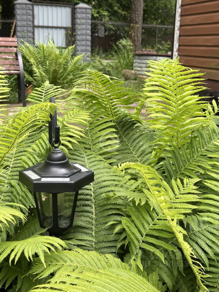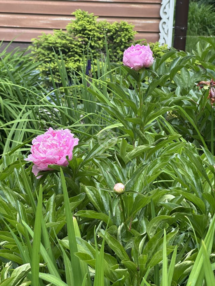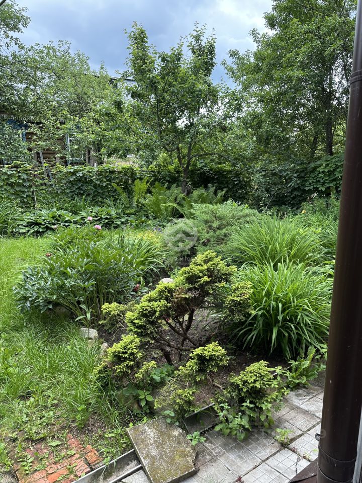 Участок неправильной формы, ухоженный, зелёный, много цветов и насаждений.