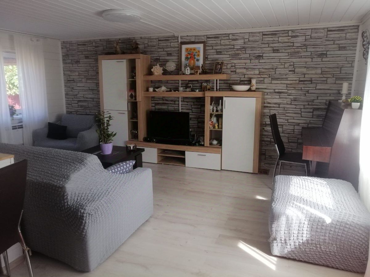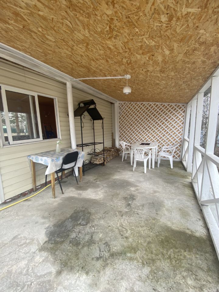 На участке построен гостевой домик с верандой и зоной барбекю. К гостевому домику подключено электричество и водоснабжение.Участок в окружении берез- ровный,сухой, формы трапеции, с небольшим естественным уклоном, высажены плодовые и декоративные культуры.