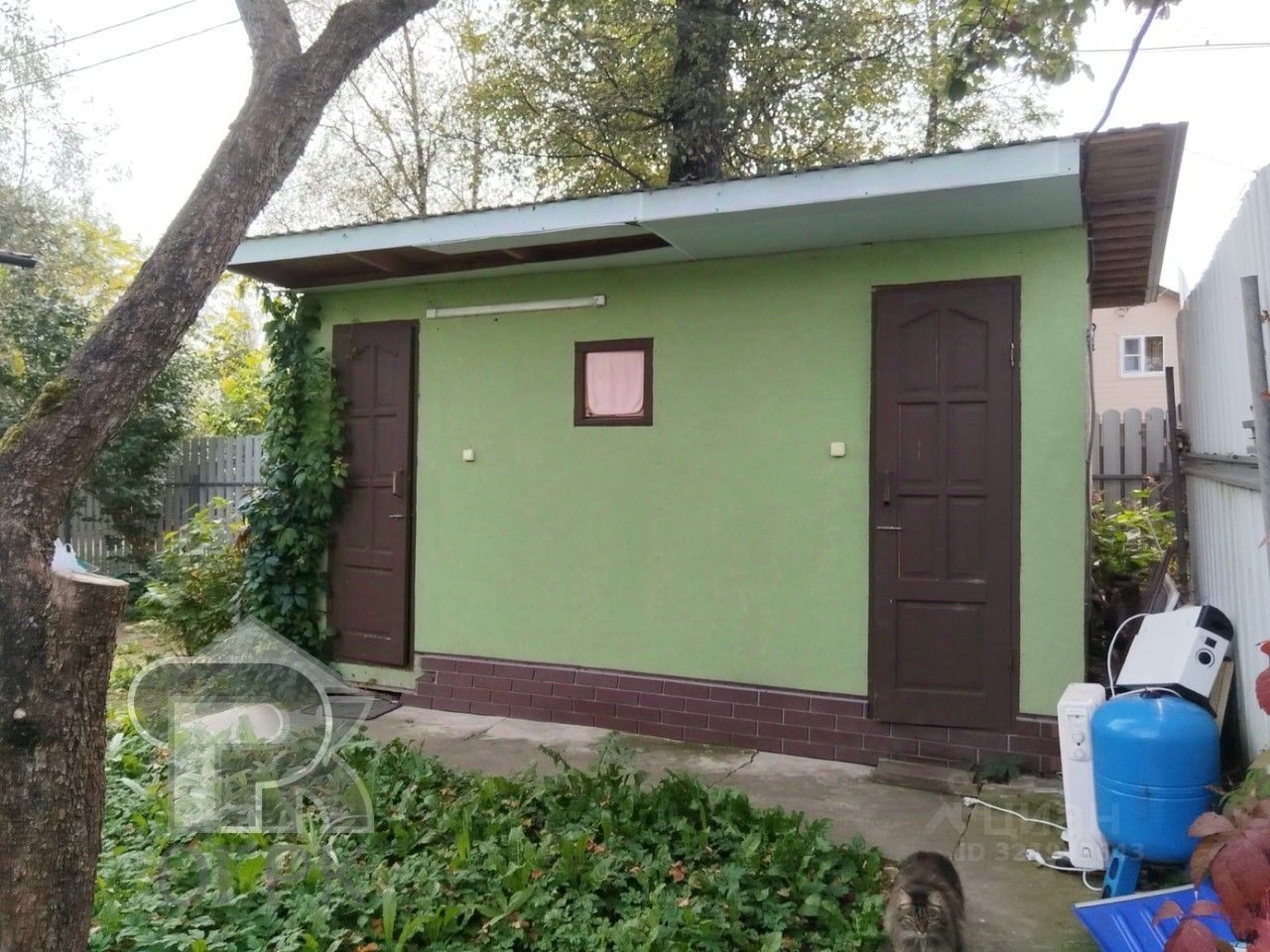 Один Дом площадью 30 кв. м (кухня и одна спальня) является блокированной постройкой (т.е. часть дома), также новый отдельностоящий одноэтажный дом 30 кв.м (одна большая спальня). Есть терраса, отдельностоящий хозблок с душевой, постирочной и санузлом. Земельный участок площадью 3.2 сотки ИЖС, прописка. Электричество 15 кВт, вода колодец, выгребная яма, отопление электричеством.