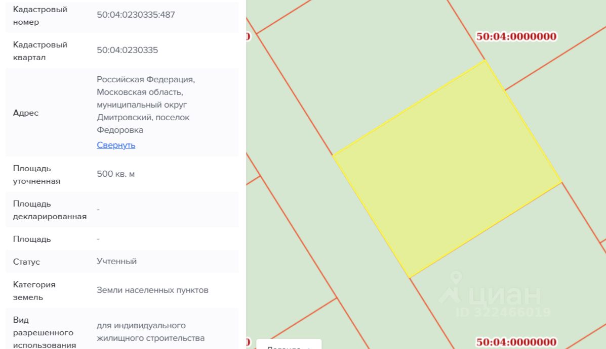 Кадастровый номер 50:04:0230335:487.