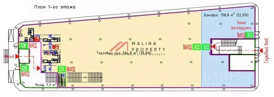 Торговый комплекс расположен в густонаселенном районе, есть собственная парковка, первая линия домов, находится на перекрестке с высоким автомобильным трафиком, высокая проходимость людей.