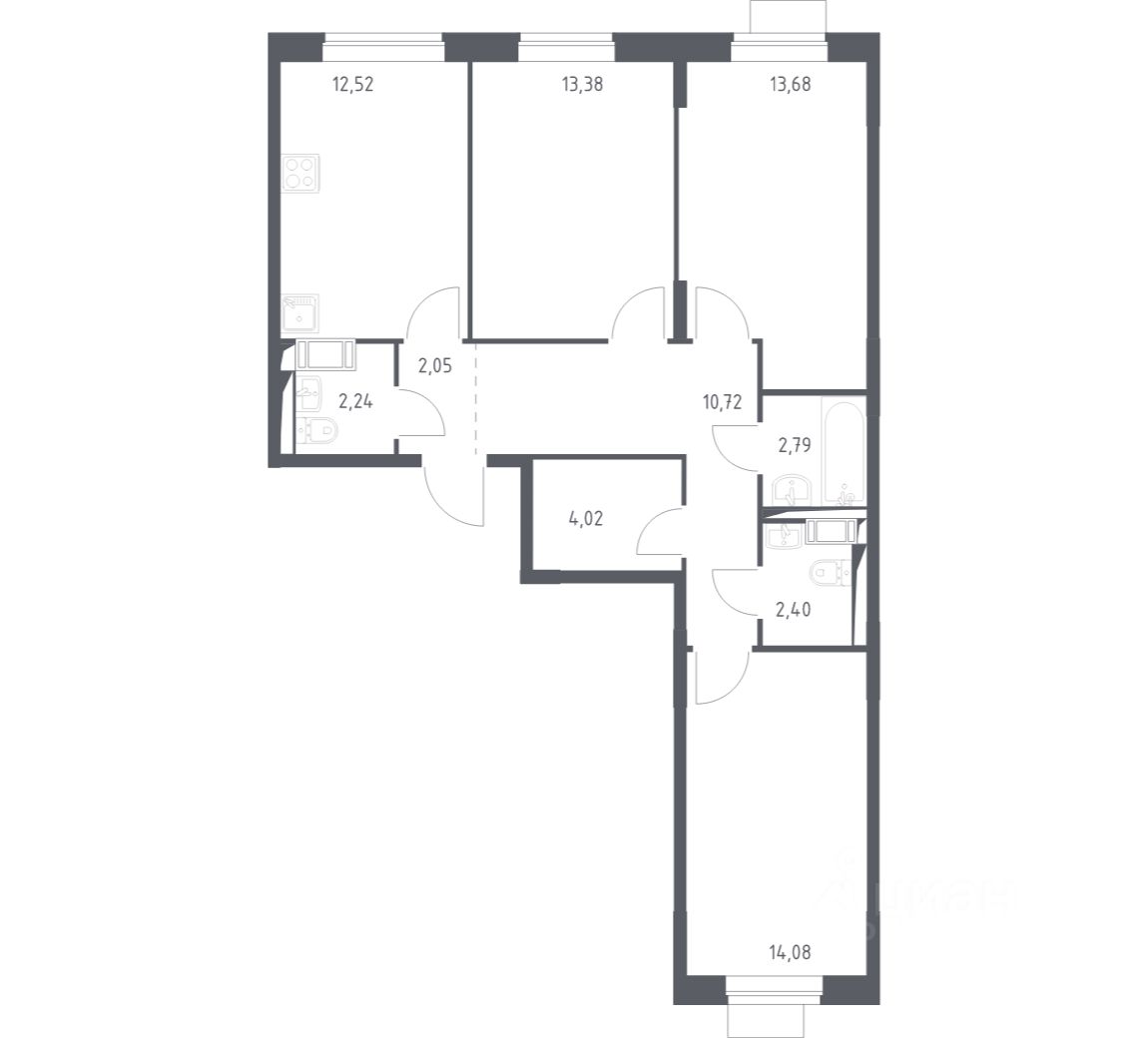 Строим кварталы для жизни с заботой о будущем. Предлагается 3-комнатная квартира оптиум-класса площадью 77,88 кв.м в корпусе 2.1 на 3-м этаже, в жилом комплексе ''Пятницкие Луга''.